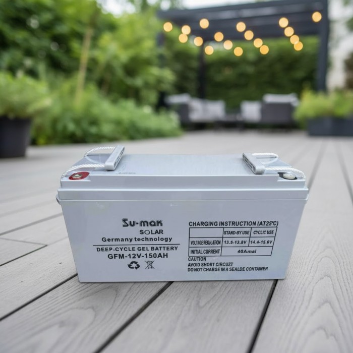 Акумулятор Su-Mak Solar GEL150-12 – це надійне джерело енергії, створене для стабільної роботи сонячних систем, джерел безперебійного живлення та іншого обладнання. Гелевий електроліт забезпечує повну герметичність та відсутність випарів, що дозволяє використовувати батарею у будь-якому положенні без ризику витоку. Такий тип АКБ не вимагає технічного обслуговування та гарантує стабільну продуктивність протягом усього терміну служби.