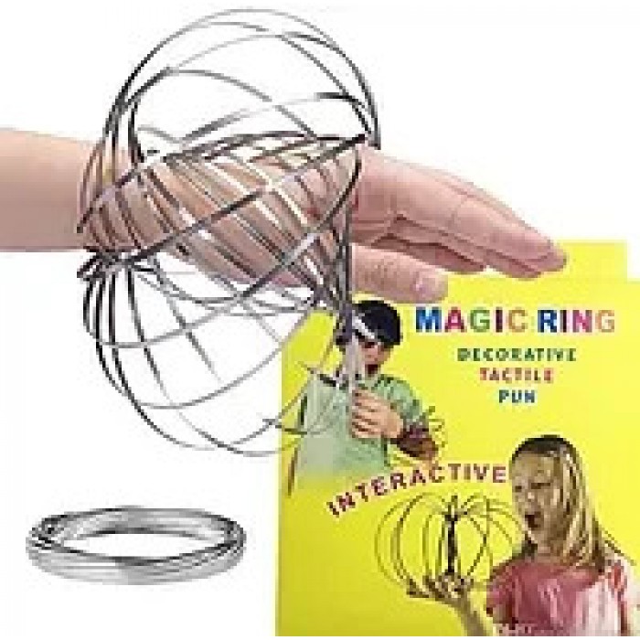 Антистрес іграшка MAGIC RING RS-59 - це кінетична іграшка, що гіпнотизує. Коли ви вставляєте руку через котушки, Magic Ring починає обертатися вгору та вниз по ваших руках, обертаючись так швидко, що викликає розмиття руху. Вона зроблена з однієї безперервної смуги із міцної нержавіючої сталі. Сама іграшка, є у складеному стані стос металевих сталевих кілець, діаметром 13см. Але варто почати маніпуляції з ними, як кільця перетворюються на об'ємну фігуру.