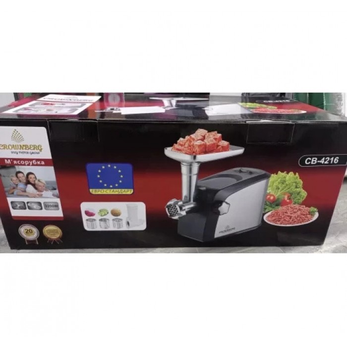 Електрична м’ясорубка Crownberg CB-4216, 3200 Вт, із соковижималкою та терками для овочів