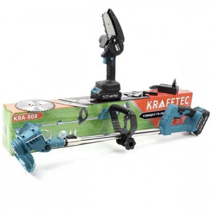Міні ланцюгова пила KRAFFTEC 48v ця мініпила з робочою шиною 10 см призначена для обрізки гілок в саду на деревах. Завдяки її малій вазі всього близько 1 кг, працювати з нею не складе труднощів навіть літнім людям. Простота збірки, натягу ланцюга і його регулювання, з якою впорається навіть жінка. Для безпечної роботи є захисний кожух, який пристосовується до саморіжучої гілки, а також виконує функцію запобігання летячих тирси в бік оператора.