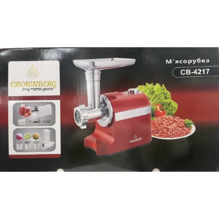 Електрична м'ясорубка Crownberg CB-4217 — це універсальний і потужний помічник на вашій кухні, призначений для швидкого та якісного приготування фаршу з м'яса, риби, грибів, а також для перероблення овочів і фруктів. Завдяки наявності різних насадок, ви легко зможете приготувати домашні ковбаси, кебе та навіть тісто для пельменів або вареників.