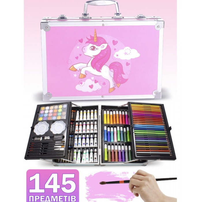 Набір для дитячої творчості та малювання Painting Set 145 предметів Єдиноріг Рожевий