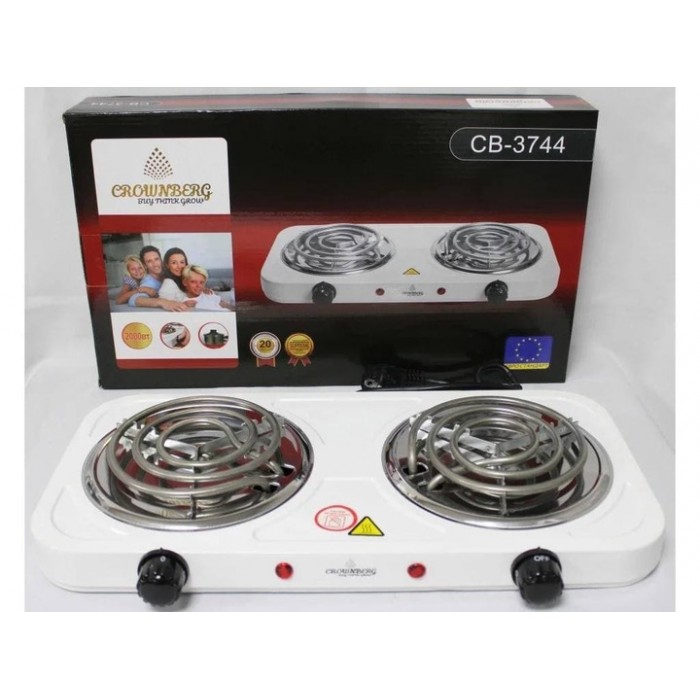 Плита електрична настільна Crownberg CB-3744 двоконфоркова спіральна 2000 Вт