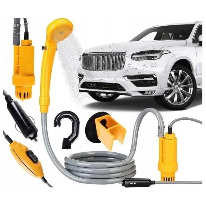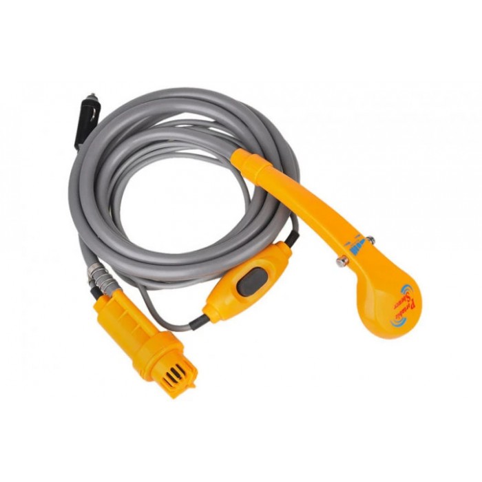 Портативний автодуш працює від прикурювача. може стати в пригоді в різних ситуаціях: вимити овочі та фрукти на пікніку, помити машину або колеса, вимити посуд або собаку, навіть самому прийняти душ.