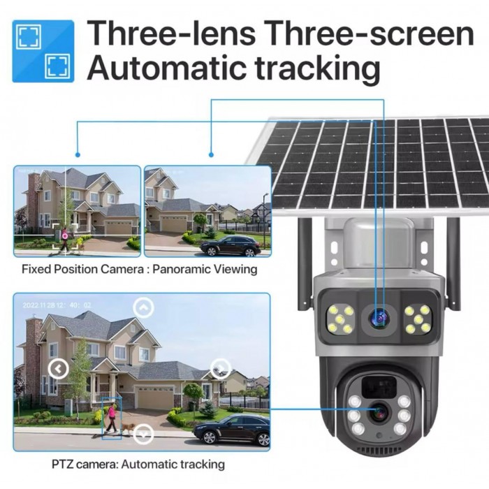 Уличная камера видеонаблюдения 4G V380 - надежный спутник вашего спокойствия. Двойная камера с с тремя экранами.