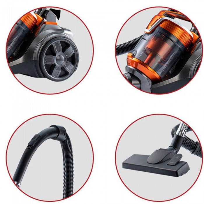 - Мягкие колеса гарантируют легкое и плавное перемещение пылесоса по любым поверхностям, что делает уборку комфортной и быстрой