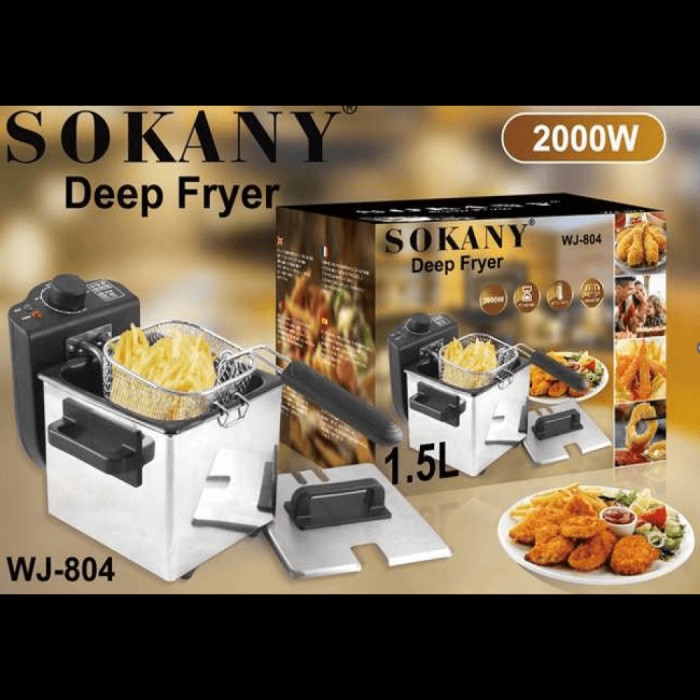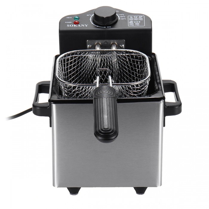 Фритюрница из нержавеющей стали SOKANY WJ-804, 1,5л - это компактная и мощная фритюрница, которая позволит вам готовить хрустящий картофель фри, наггетсы, креветки, пончики и другие блюда прямо у себя дома. безопасность.