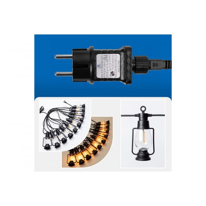 Гирлянда «Лампы подвесные» модель SFK-49 предназначена для наружного (уличного) декоративного освещения. Оснащена подвесными лампами на нити, рассчитанной на питание от стандартной сети 220 В. Подвесной формат ламп придаёт декору эффект лёгкой подвешенной цепочки светильников, создавая атмосферу кафе, летней верандЫ, витрины или фасада здания. Упаковка — 20 шт в одном ящике (20 шт/ящ), что удобно для оптовых закупок и оформления больших участков. Подходит для праздничного оформления, сезонного декора и постоянного декоративного освещения наружных пространств.