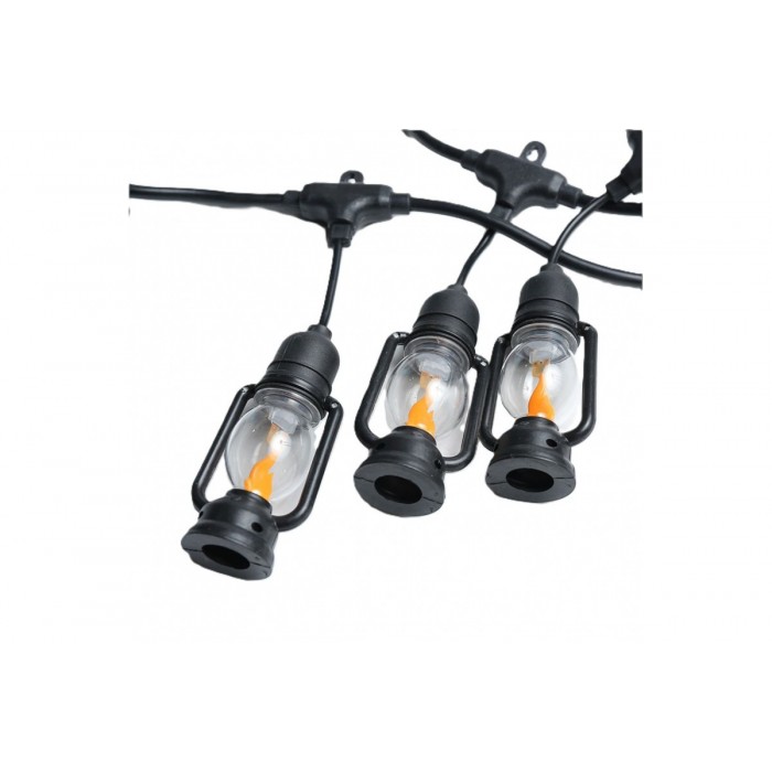 Уличная подвесная гирлянда SFK-50 предназначена для декоративного освещения открытых пространств: фасадов зданий, веранд, кафе под открытым небом, мероприятий на улице. Серия выполнена в стиле «лампы подвесные», создающих эффект «пламени огня» — тёплый, мерцающий свет с эффектом живого пламени. Напряжение питания — от сети 220 В, что упрощает подключение без трансформатора. Корпус ламп и кабель рассчитаны на эксплуатацию снаружи, с учётом воздействия влаги и ветра.