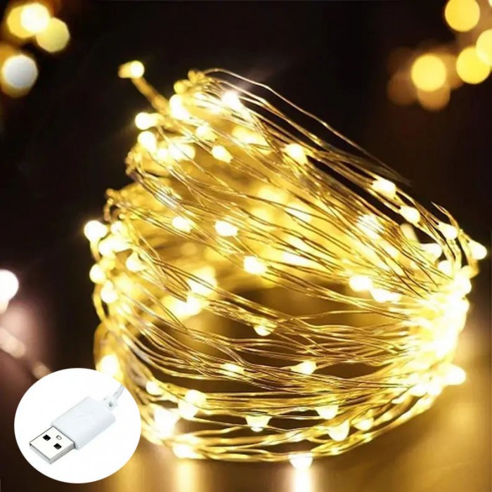Гирлянда на батарейках + USB 10м, теплый белый