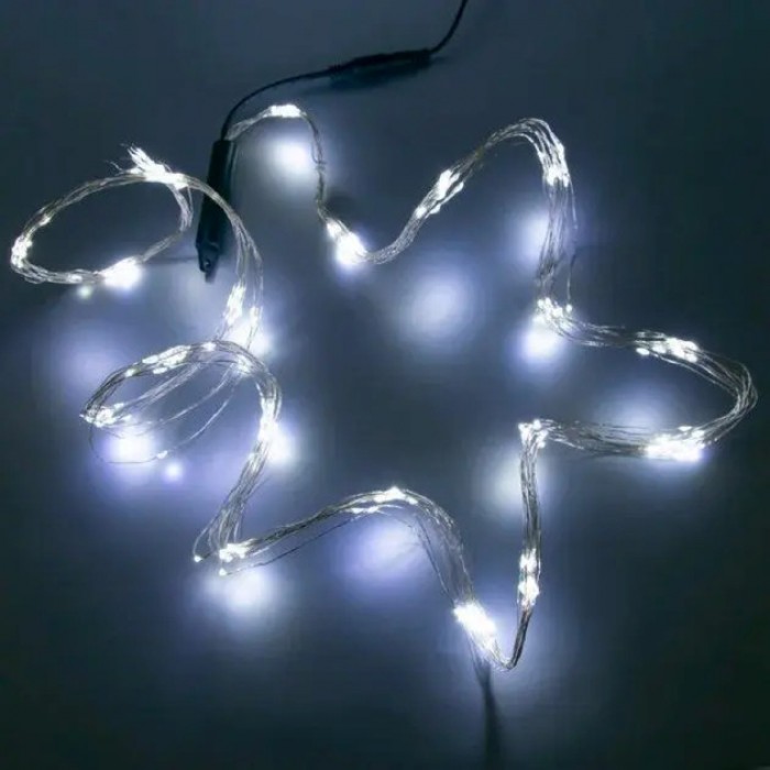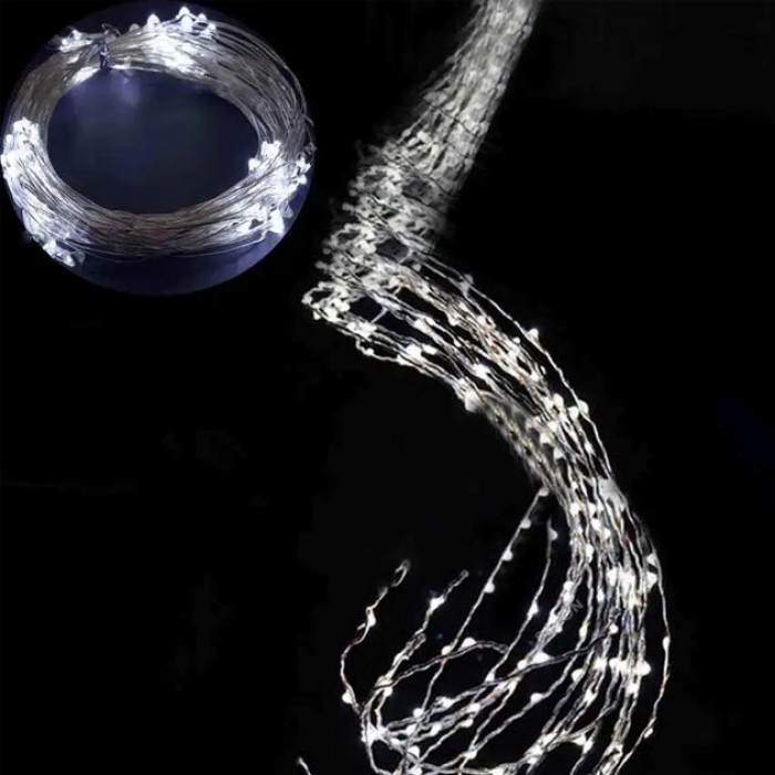 Гирлянда Конский хвост состоит из 10 тончайших нитей медной проволоки длиной 200 см. На каждой нити расположены мини светодиоды холодного белого цвета общим количеством 200 шт. по 20 штук на каждой нити.