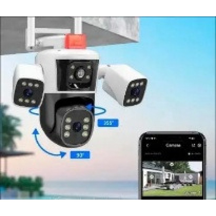 Многолинзовая оптика: «4 объектива» — подразумевается, что камера имеет четыре независимых линзы или зоны обзора для расширенного охвата.