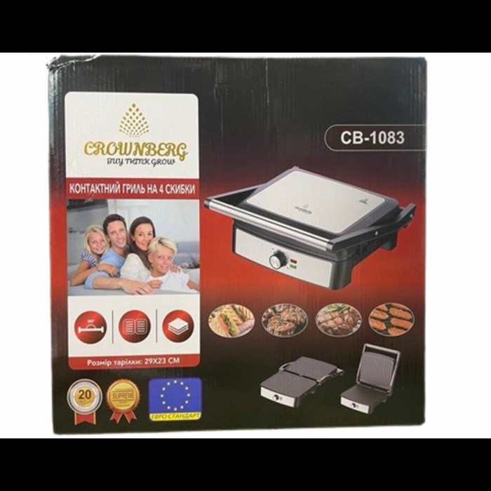 Контактный гриль Crownberg CB-1083, на 4 порции, с терморегулятором, размер пластин 29×23 см