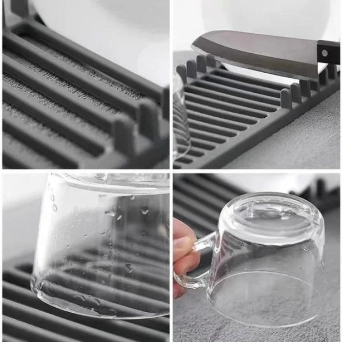 Эта сушка для посуды настольная, что избавляет Вас от необходимости постоянно вытирать тарелки от воды и затем ставить их в шкаф. Пластиковая подставка для посуды, способная вместить достаточное количество тарелок, столовых приборов и чашек, может легко отсоединяться от микрофибры, чтобы отправиться в посудомойку. Микрофибра может быть постирана в стиральной машине.