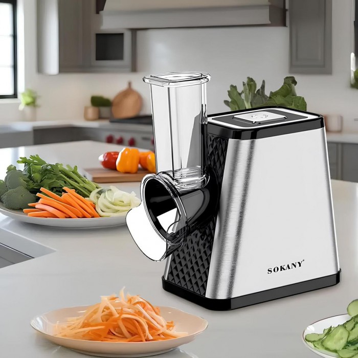 Измельчитель овощей Sokany SK-06029 – это универсальный кухонный прибор, который позволяет быстро и удобно нарезать, измельчать и готовить овощи, фрукты и зелень. Благодаря пяти сменным насадкам из нержавеющей стали процесс приготовления становится простым и безопасным, а мощность 800 Вт обеспечивает быстрый результат без усилий.
