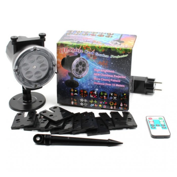 Лазерный проектор уличный 518 с пультом и 12 картриджами для световых эффектов водонепроницаемый