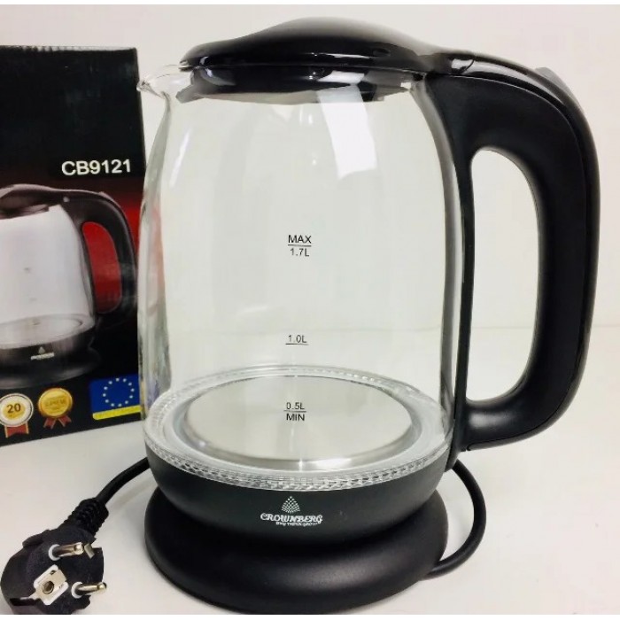 Электрический дисковый стеклянный чайник Crownberg CB-9121 1800 Вт с подсветкой