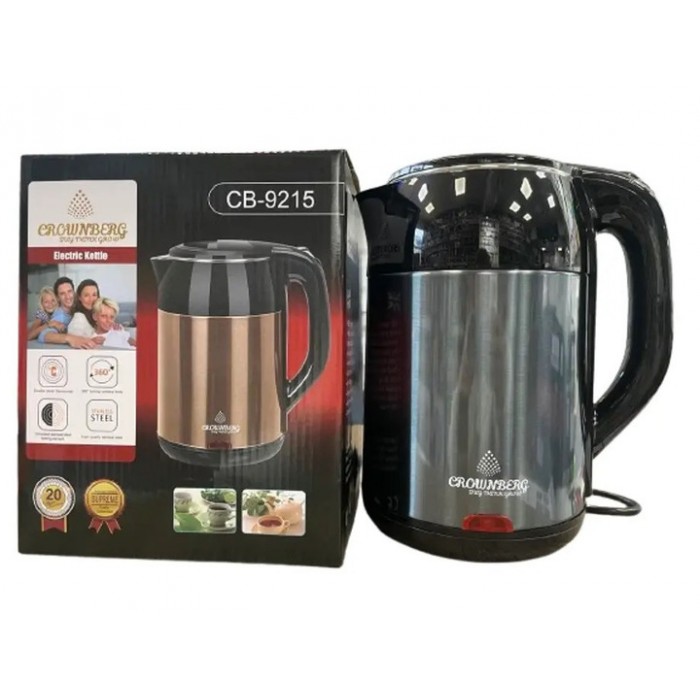 Crownberg CB-9215 - это современный электрочайник с лаконичным дизайном и высоким уровнем безопасности. Благодаря вместимости 2 литра и мощности 2200 Вт, он легко справляется с задачами дома, в офисе или на даче. Корпус из нержавеющей стали сохраняет температуру воды и отличается долговечностью.
