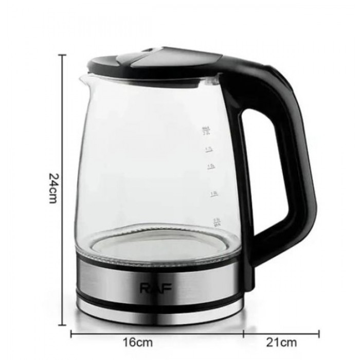 Электрический стеклянный чайник RAF R.7842 объемом 2,2 л и мощностью 2000 Вт является элегантным и функциональным устройством для вашей кухни. Его стильный дизайн, поддержанный подсветкой, делает процесс заваривания чая или кипячения воды еще более приятным и эстетическим.