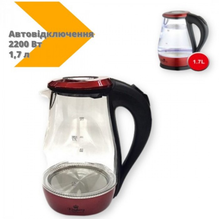Чайник электрический Kingberg 1.7 л KB-2031 2200 Вт, красный