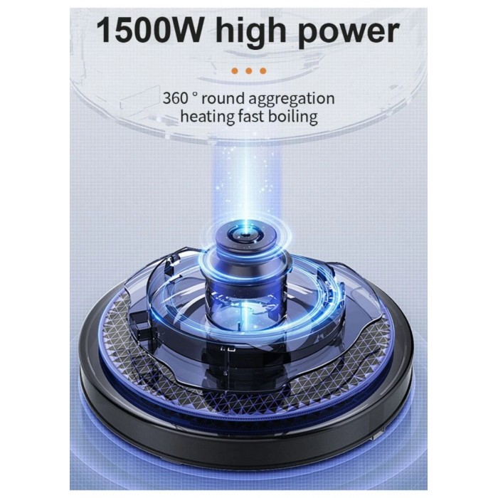 - Мощность: 1500 Вт, что позволяет быстро закипятить воду.