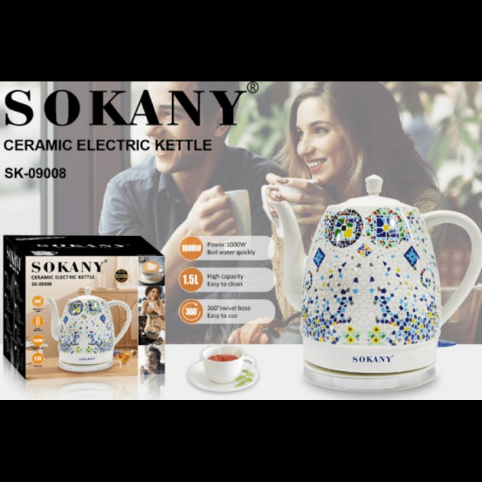 Электрочайник керамический SOKANY SK-09008 дисковый 1,5л, мозаика