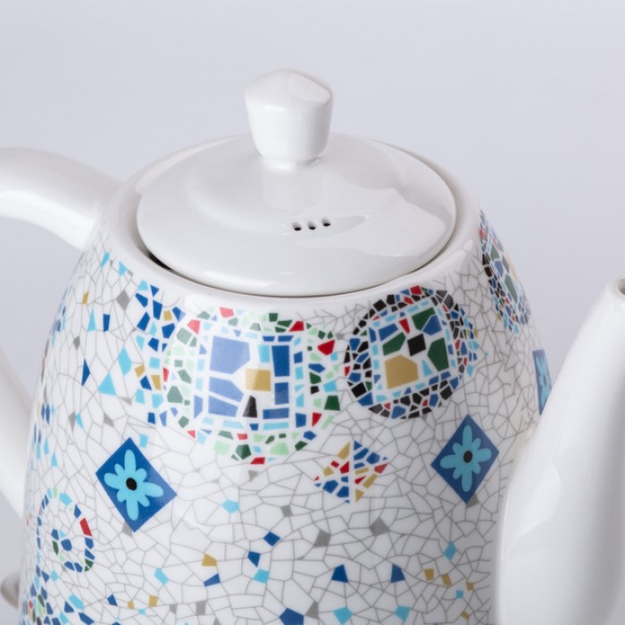 Этот чайник объемом 1,5 л идеально подходит для приготовления чая или кофе для небольшой компании. Керамический корпус сохраняет тепло, а также способствует более равномерному нагреву воды. Его уникальный мозаичный узор придает эстетической привлекательности и стилю вашей кухни, создавая особую атмосферу.