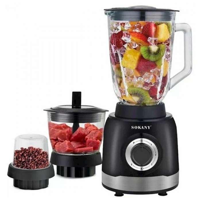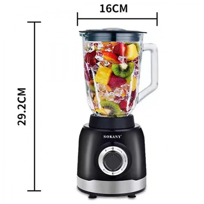 Многофункциональный мощный измельчитель со стеклянной чашей и ножами из нержавеющей стали Sokany SK-JB-178 5 скоростей защита от перегрева противоскользящие ножки