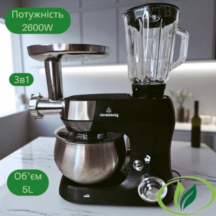 Кухонная машина Crownberg CB-3409 оснащена широким спектром возможностей, позволяющих ей стать настоящим многофункциональным центром на вашей кухне.