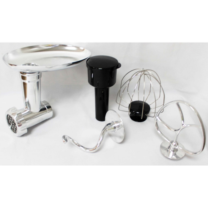 - 3 мощных вспомогательных насадки для взбивания с надежным креплением: крюк для замеса, насадка для взбивания и для непосредственного замеса теста