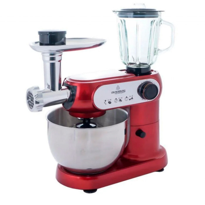 Кухонный комбайн 3 в 1 непременно упростит работу на кухне, ведь он не только многофункциональный, но и достаточно быстро справляется с любой поставленной задачей. Мы предлагаем вашему вниманию кухонный комбайн от торговой марки Crownberg, который успешно соединил в себе тестомес, мясорубку и блендер.