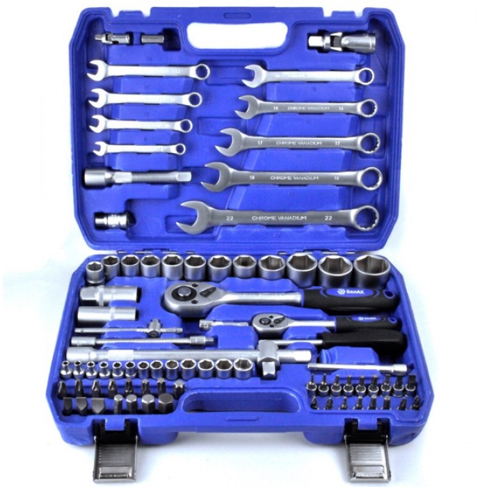 Набор инструментов для авто (82 предмета) – это универсальный комплект, содержащий все необходимые инструменты для ремонта и обслуживания автомобиля. В наборе есть 82 предмета, среди которых торцевые головки разных размеров, трещотка, удлинители и другие вспомогательные инструменты. Это позволяет производить широкий спектр работ: от базового обслуживания автомобиля до сложных ремонтных задач.