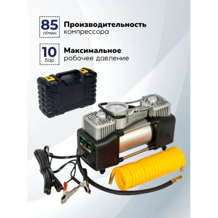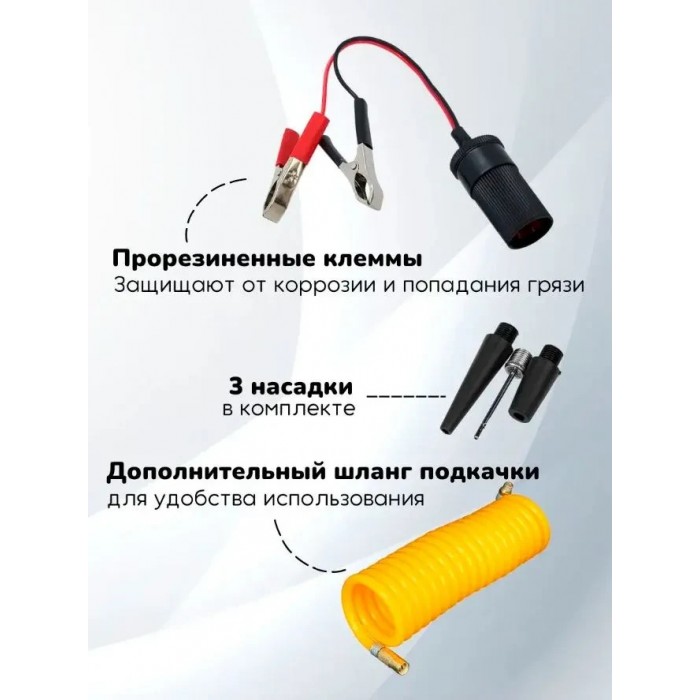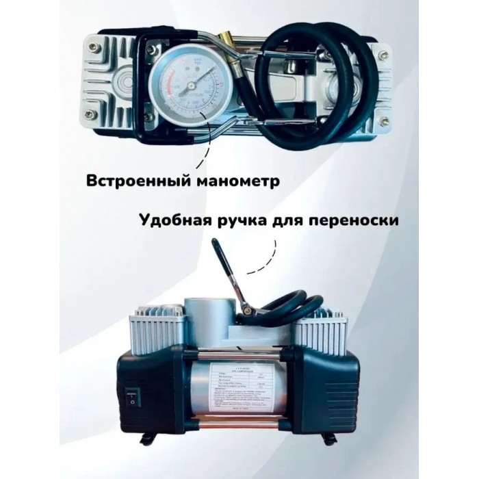 Этот мощный двухпоршневой компрессор с универсальным питанием запускается от прикуривателя и аккумулятора авто. Накачаете колесо быстро, менее чем за 5 минут!