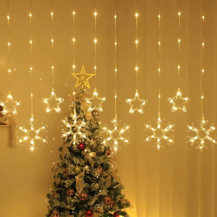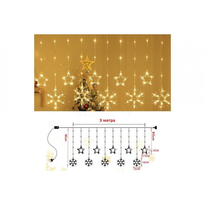 Новогодняя гирлянда-шторая звезда-снежина 3 м*80 см SFK-19 Гирлянда теплый цвет на 8 режимов