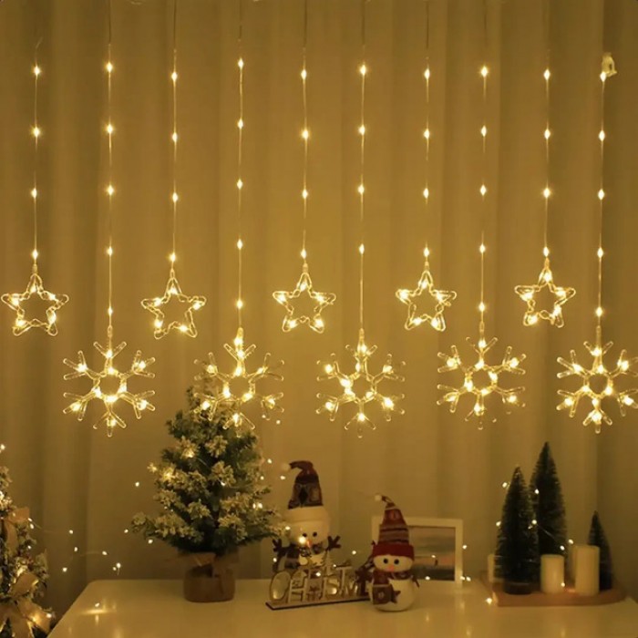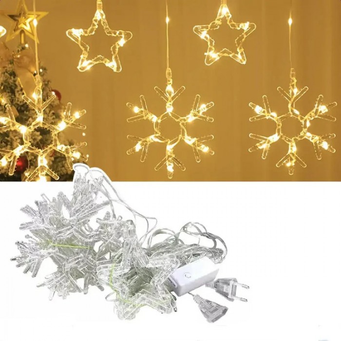Гирлянда-штора «Снежинка и звездочка» – это идеальное решение для создания волшебной атмосферы в праздничный сезон.