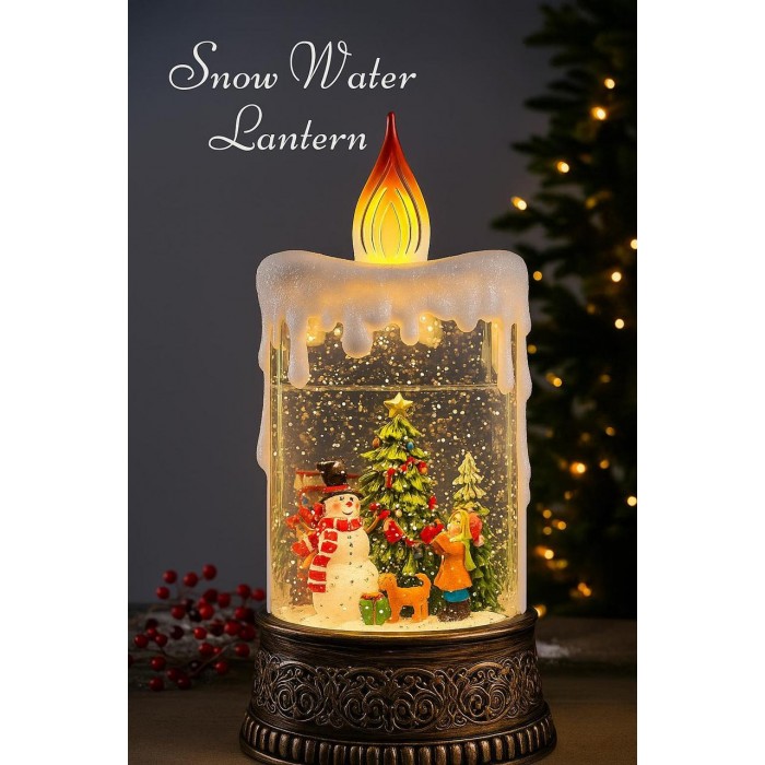 Этот декоративный ночник создаст уютную атмосферу в вашем доме в новогодние праздники. Выполнен в форме свечи с декоративным снеговиком, елкой и другими праздничными элементами внутри прозрачной колбы. Свет мягко мерцает, имитируя живое пламя, что придаёт интерьеру волшебство.