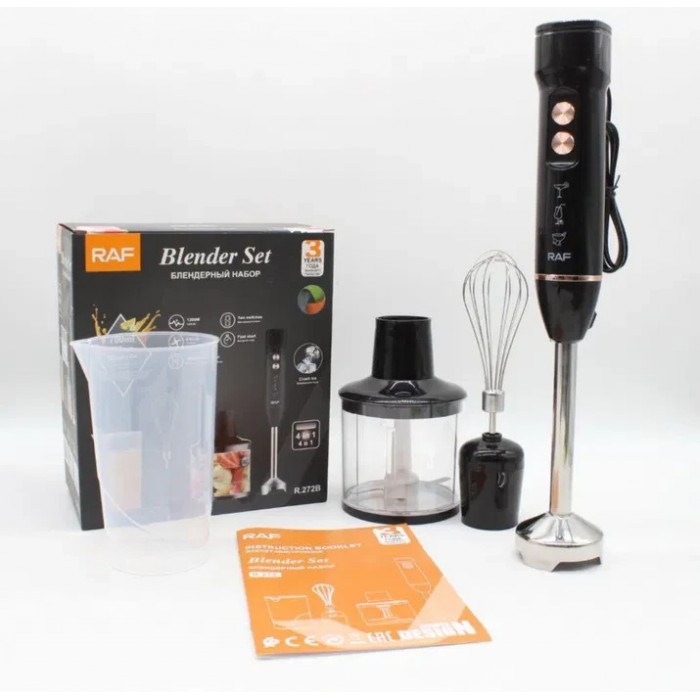 RAF R272 – это универсальный погружной блендер 4в1 с мощностью 1200 Вт. Оснащенный турборежимом, плавной регулировкой скорости и четырехлопастным ножом, он легко измельчает, взбивает и смешивает любые ингредиенты. Подойдет как для домашнего, так и профессионального использования.