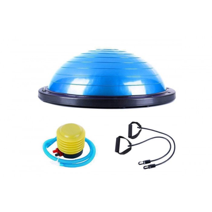 Тренажер является половиной упругого мяча, закрепленного на жесткой пластиковой платформе, что позволяет выполнять упражнения как на выпуклой, так и плоской стороне.