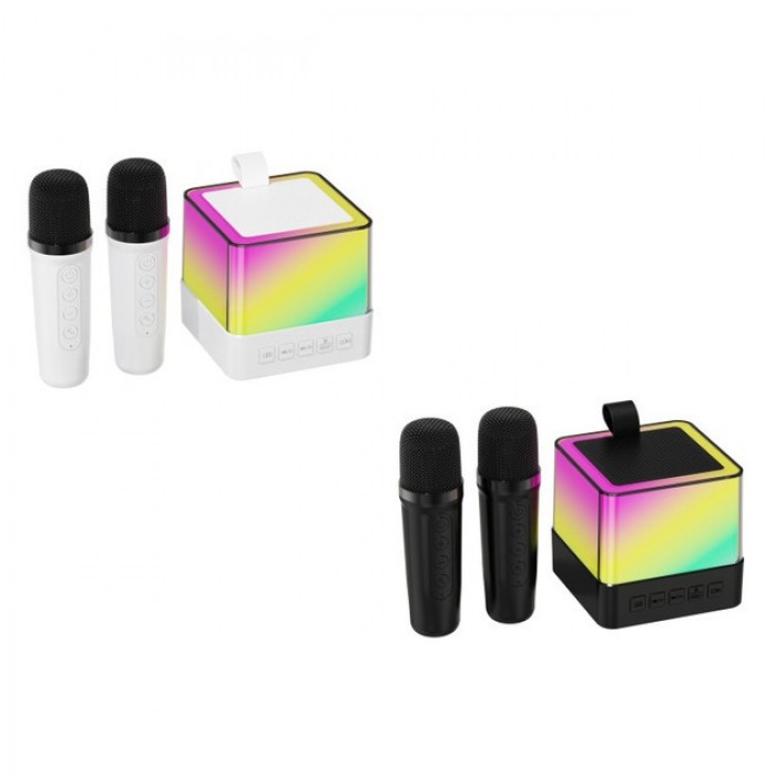 Портативная колонка K18 – универсальный музыкальный центр для дома, улицы и вечеринок. Оборудована двумя беспроводными микрофонами, поддержкой Bluetooth 5.1, LED подсветкой RGB и мощностью 10 Вт. Идеально подходит для караоке, прогулок, пикников и активного отдыха.