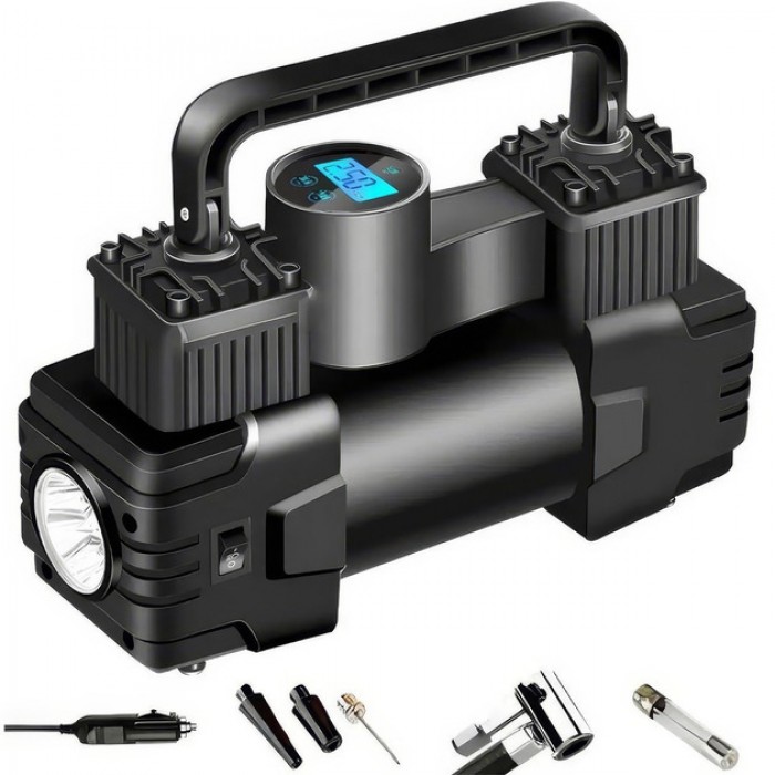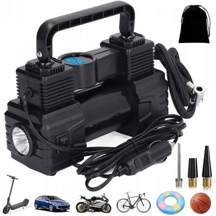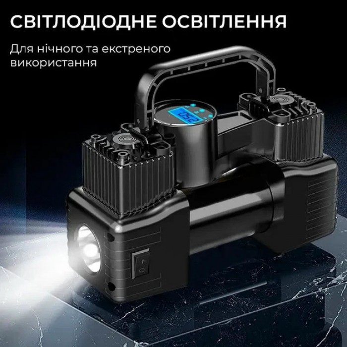 Портативный автомобильный компрессор Air Pump XL-1025 12 V с цифровым дисплеем, LED-фонариком.