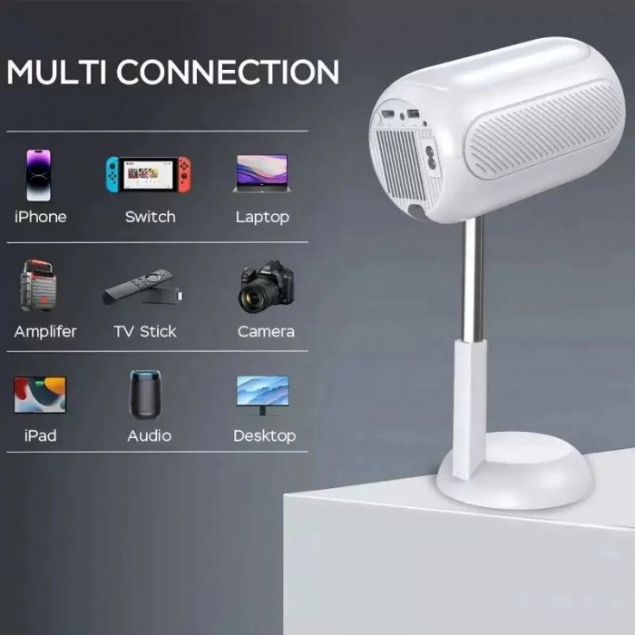 Компактные размеры и легкий вес делают его идеальным для путешествий и использования на открытом воздухе. Поворотная подставка позволяет легко настроить угол проекции, а поддержка беспроводных технологий обеспечивает удобное подключение к разным устройствам.