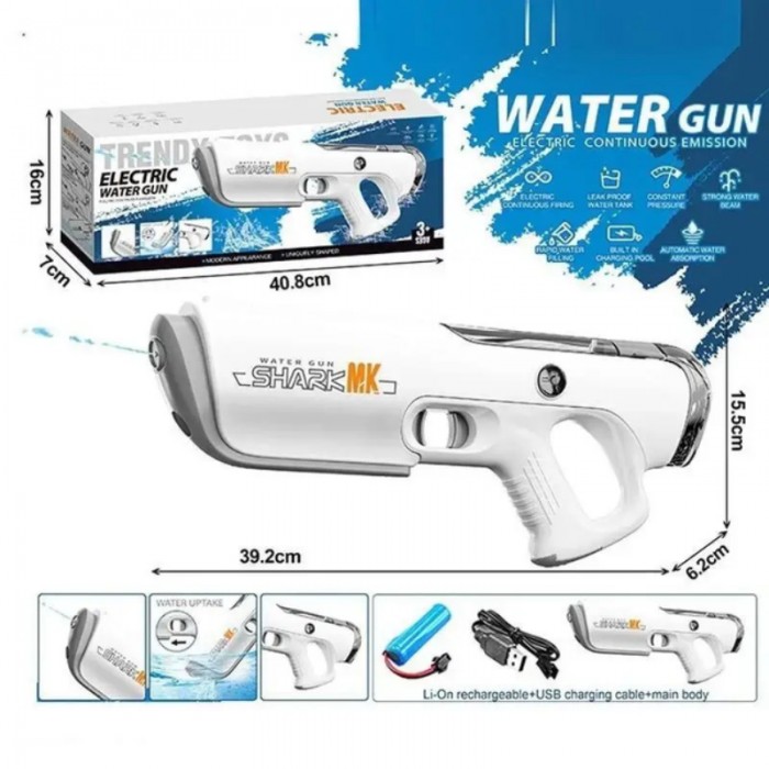 Время работы на одном заряде достигает 40 минут, что позволяет наслаждаться игрой без частых перезарядок. Питание от аккумулятора избавляет от необходимости вручную накачивать воду, достаточно нажать на курок, и начинается настоящее водное приключение.