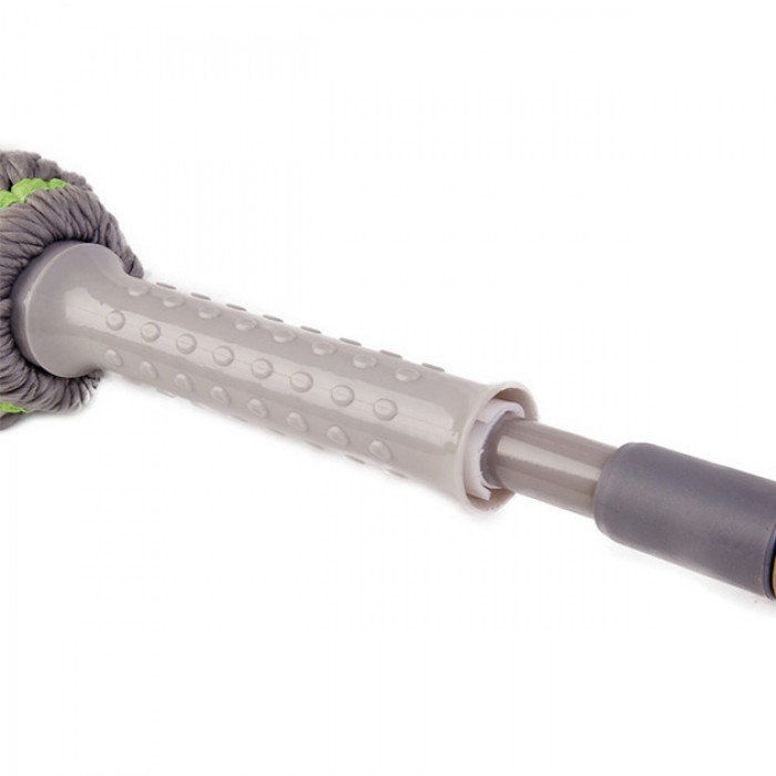 Благодаря специальному механизму отжима на швабре, ваши руки всегда остаются сухими и чистыми во время уборки. Швабра изготовлена из достаточно прочного металла и пластика, что обеспечивает простоту и надежность в эксплуатации. Длина ручки 120 см. Насадка из микрофибры имеет длину 20 см, диаметр 30 см.