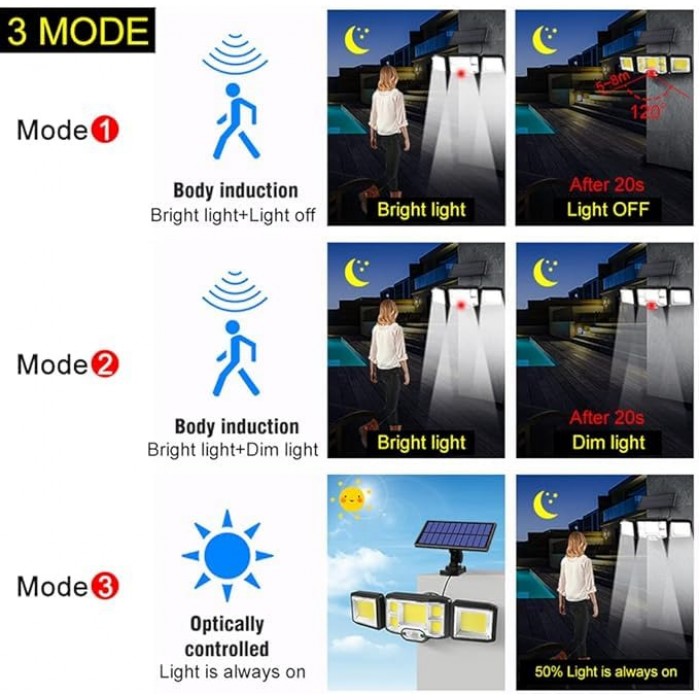 - Многофункциональность. Фонарь с датчиком движения изготовлен из высококачественного материала, который обладает хорошими характеристиками рассеивания тепла, прочный и элегантный.