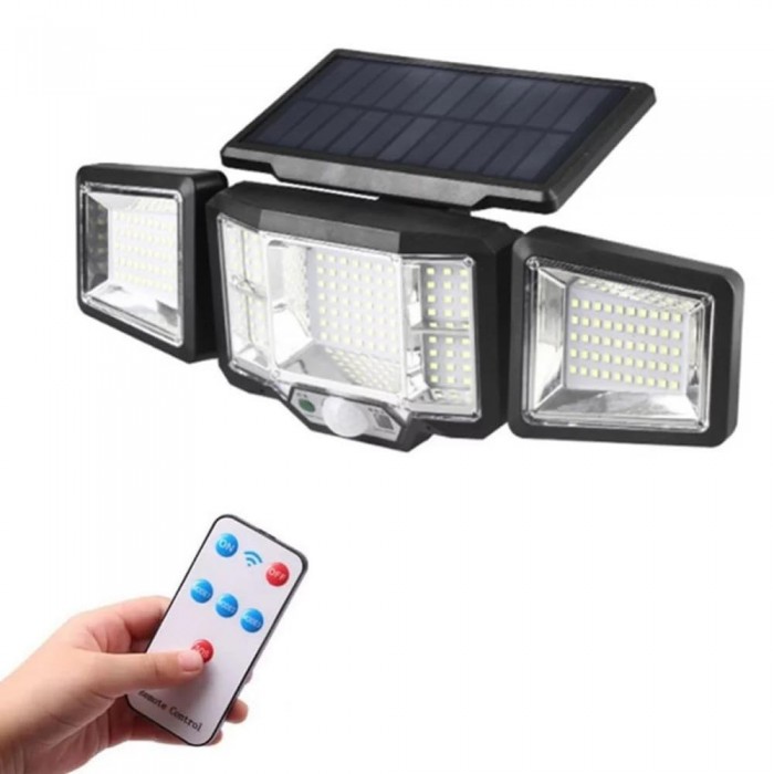 Уличный тройной светильник на солнечной батарее с датчиком движения BL-JB-2188 Автономный уличный LED фонарь