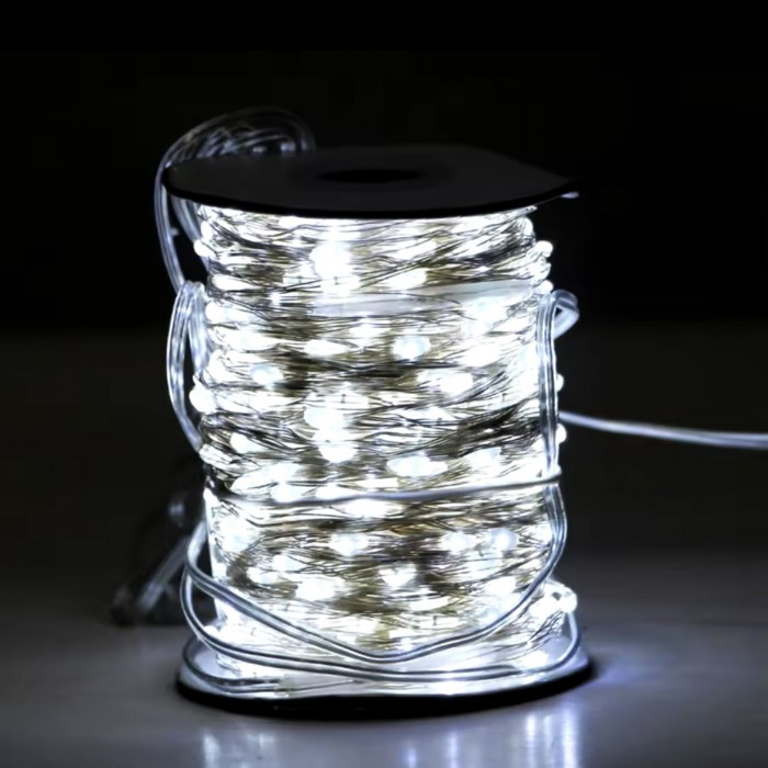 Эта светодиодная гирлянда создана для тех, кто ценит стиль и простоту: тонкий серебряный провод практически не заметен на фоне интерьера или новогодней ели, создавая эффект «висящих в воздухе» световых точек. Протяжённость в 50 метров позволяет красиво оформить стену, арку, витрину или фасад. Благодаря питанию от сети 220 В и наличию входа USB, монтаж становится гибким — можно подключать как к стандартной розетке, так и через адаптер. Управление осуществляется с пульта дистанционного управления, а встроенный таймер позволяет задать автоматическое включение/выключение без необходимости вручную каждый раз. Идеально для праздничного настроения и длительного использования.