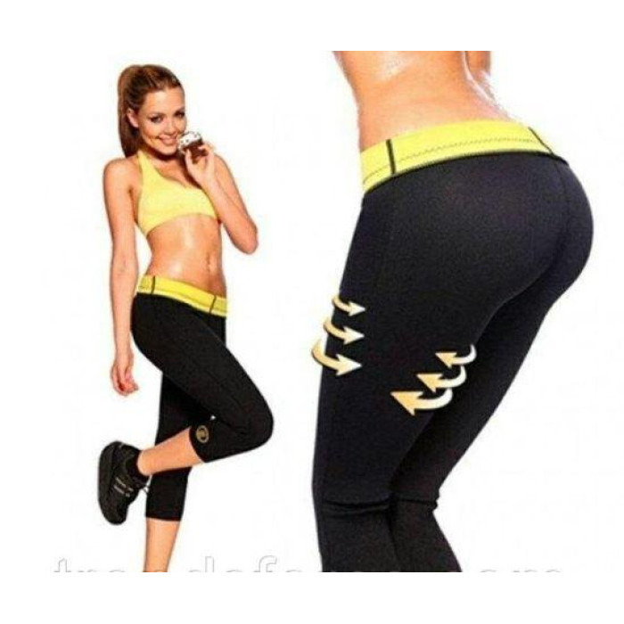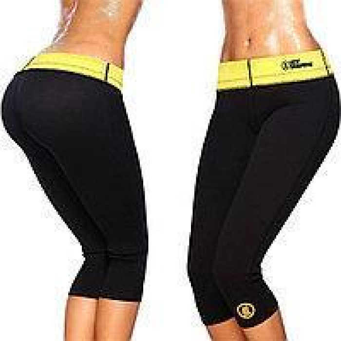 Бриджі для схуднення HOT SHAPER PANTS - бриджі однотонного чорного кольору, з яскраво-жовтою підкладкою та жовтою емблемою на поясі. Виглядають вони як звичайний одяг, навіть не скажеш, що це спеціальні бриджі для схуднення. Штани стильні та красиві, і, завдяки універсальному забарвленню, чудово поєднуються з будь-якими топами, футболками та спортивним взуттям. Бриджі мають високу талію та довжину нижче коліна. Вони безшовні, м'які та дуже еластичні. Бриджі мають легкий ефект, що стягує, тому сидять на фігурі відмінно і відразу роблять її більш привабливою, коригуючи проблемні місця.