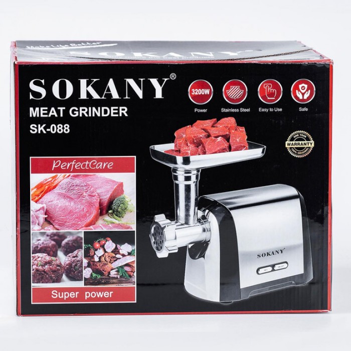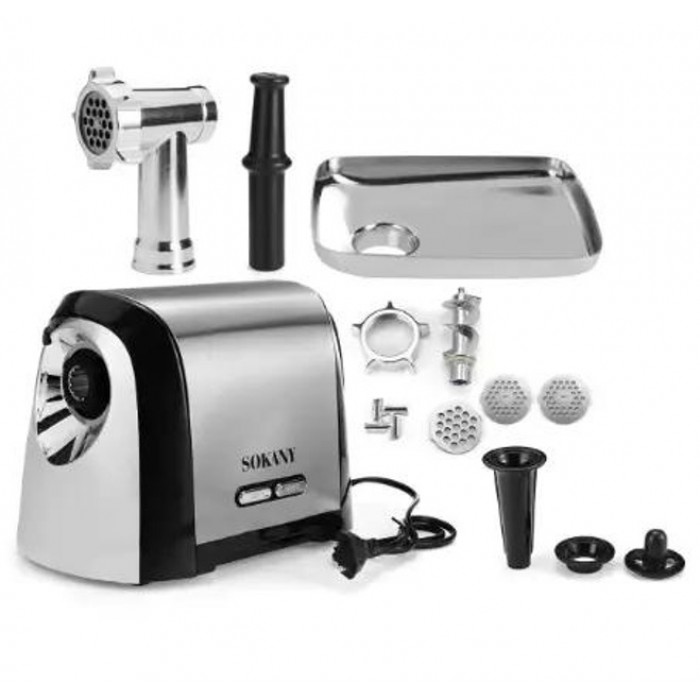 - Потужність і продуктивність. З потужністю 2500 Вт м'ясорубка Sokany гарантує найвищу продуктивність, забезпечуючи швидке та ефективне подрібнення м'яса.